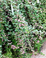 "梨木神社"へ行って来ました。枝垂れた枝に、赤紫色と、白色の可憐な花が、咲いていて