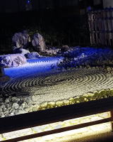 青い光りに照らされたお庭は、優美で、神秘的だ。又、POPでエネルギッシュな、