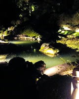 ライトアップされた、紅葉、池、竹林、建物は、普段とは、異なる表情が醸し出され、